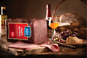 بیکن ها گونه های مختلفی دارند ولی یکی ازپرطرفدارترین آنها streaky bacon  نامیده میشود که منظور از streaky  وجود رگه های چربی نازک در موازات گوشت در لایه های مختلف میباشد ( که در امریکا به آن belly bacon  و در انگلیس به آنloin bacon  نیز گفته میشود ) به لحاظ این ویژ گی در گذشته streaky bacon  تنها از گوشت خوک تهیه و تولید میگردید ودیگر وجه تمایز این نوع بیکن نوع سرو آن میباشد که معمولا بصورت گرم  بدون و یا همراه تخم مرغ و بیشتر در وعده صبحانه در کشورهای امریکا و بعضی از کشورهای اروپایی استفاده میشد و جایگاه آن مثل چای شیرین و پنیر تبریز در سفره ایرانی ها میباشد و البته امروزه در بیشتر کشور های دنیا شناخته شده و مورد استفاده قرار میگیرد لذا این شرکت با تحقیق و پژوهش روی این بیکن موفق به تولید بیکن رگه‌دار حلال از گوشت گوساله گردیده با همان ویژگی ها به لحاظ طعم و احساس دهانی و بافت .
